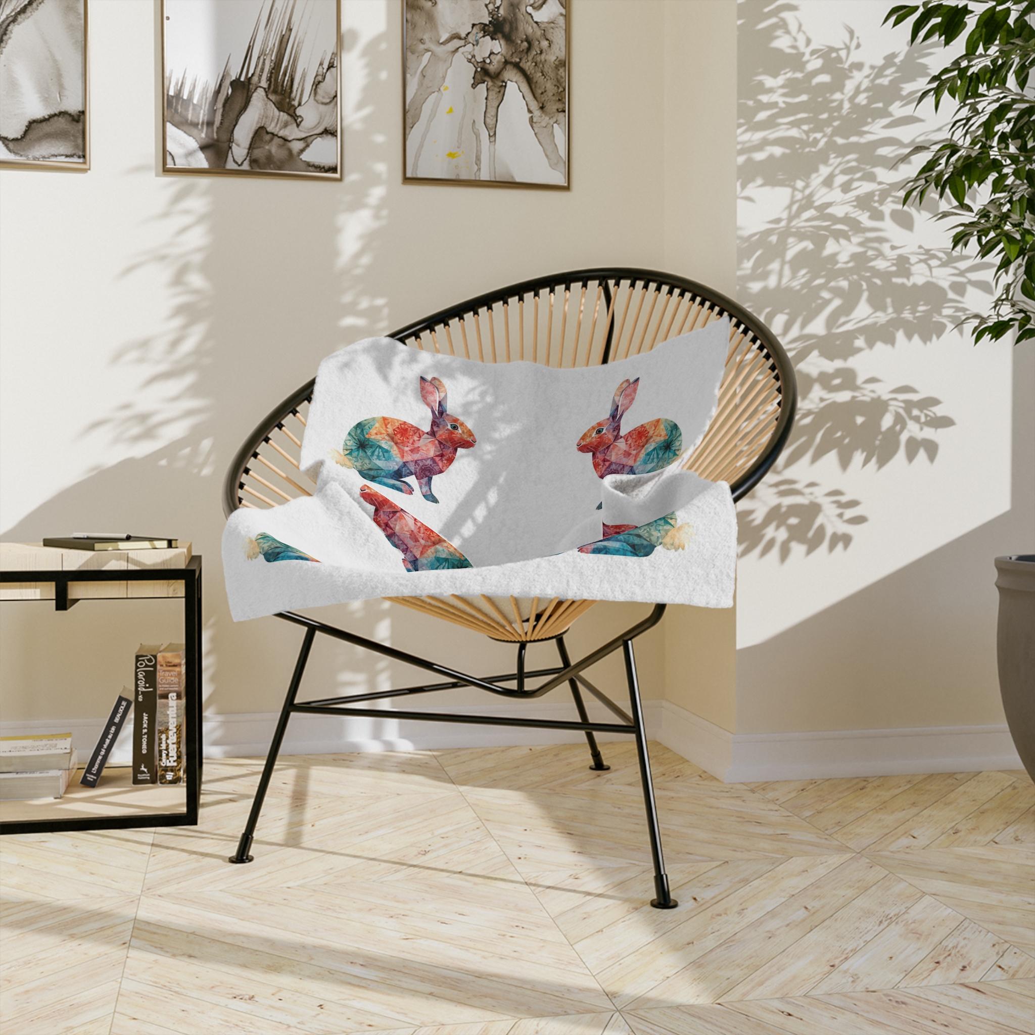 Lightweight, velvety, and richly patterned, this microfiber blanket wraps a quiet moment in color. Soft plush polyester feels like a warm hush against skin while the bright, watercolor-style rabbit motifs add playful charm without overwhelming a room. Fold it over an armchair, tuck it around small shoulders during story time, or spread it across a couch for an instant pop of whimsical art. The printed side holds crisp, vibrant hues that stay true wash after wash, and the neat stitched edge keeps the shape tidy through everyday use. It’s an easy way to bring gentle color and cozy texture into nurseries, reading nooks, and living spaces where calm comfort matters.