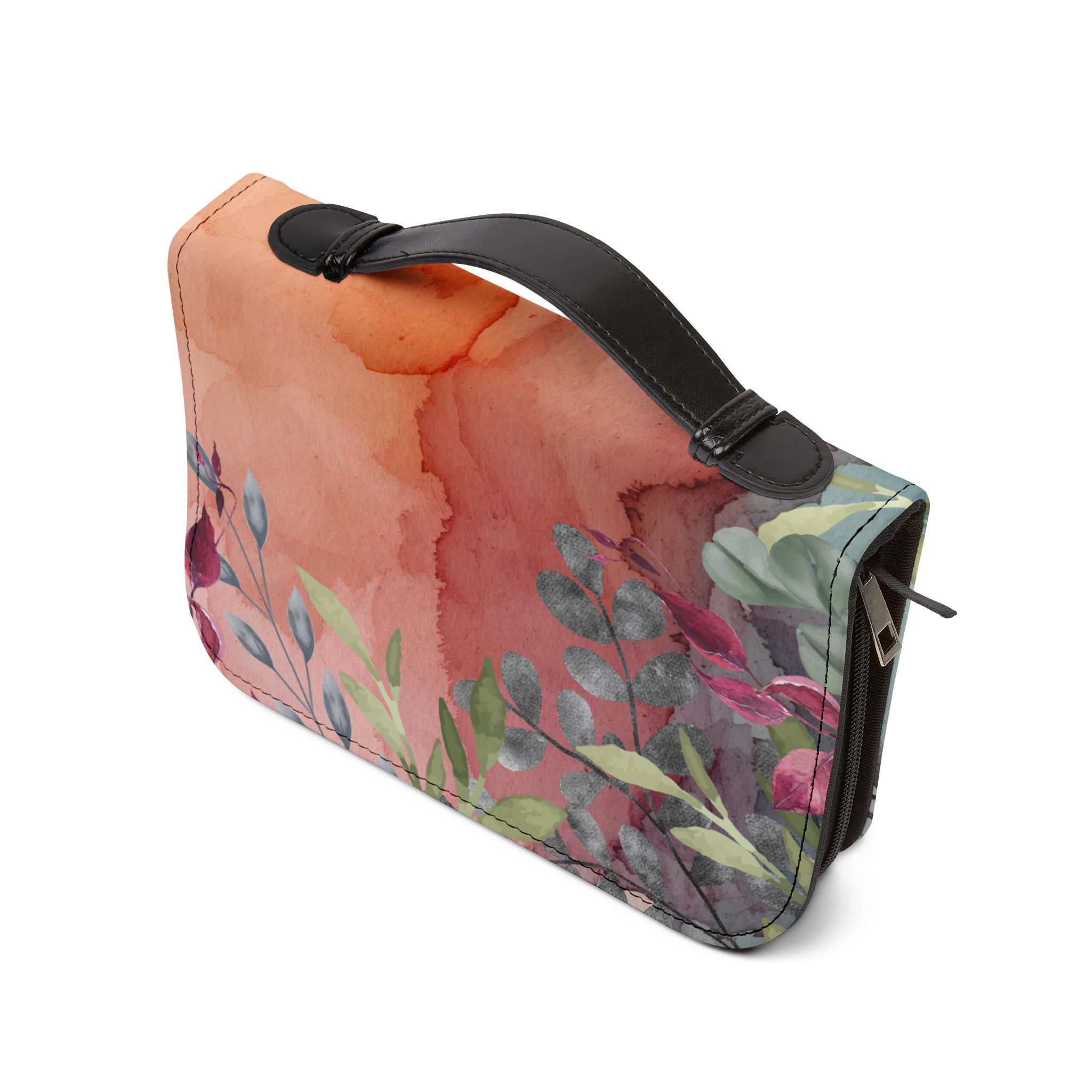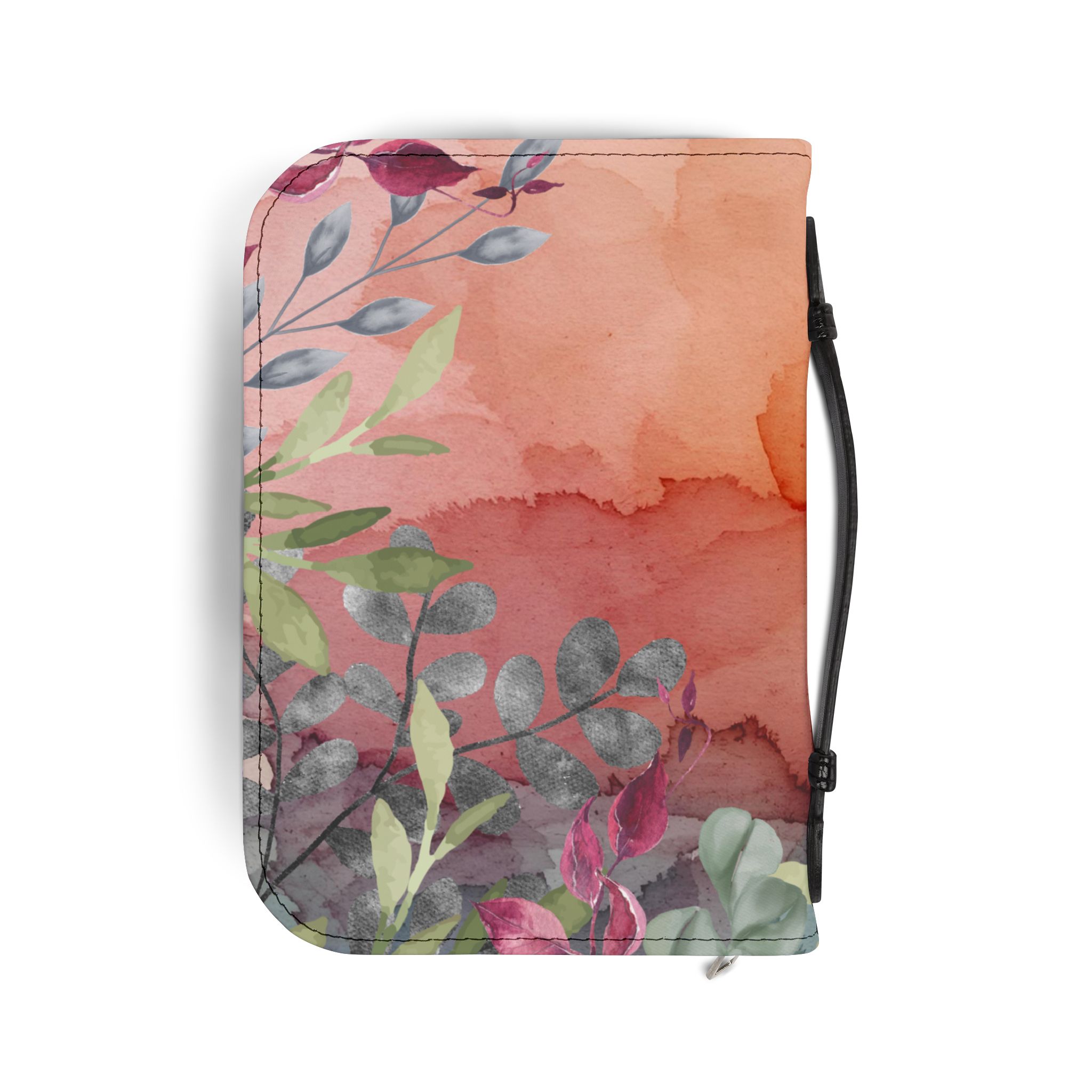 Soft watercolor blooms drift across a warm sunset background, wrapping your Bible in gentle color and calm. This zippered cover feels like a quiet breath between pages — protective, tidy, and thoughtfully arranged. Inside, organized pockets keep notes, pens, and bookmarks within reach. The black handle and zipper add a refined contrast that’s easy to carry to church, study groups, or quiet mornings at home. Choose the size that best fits your Bible (consider ordering one size up for a relaxed fit) and bring a little artful serenity to your daily reading and reflection.