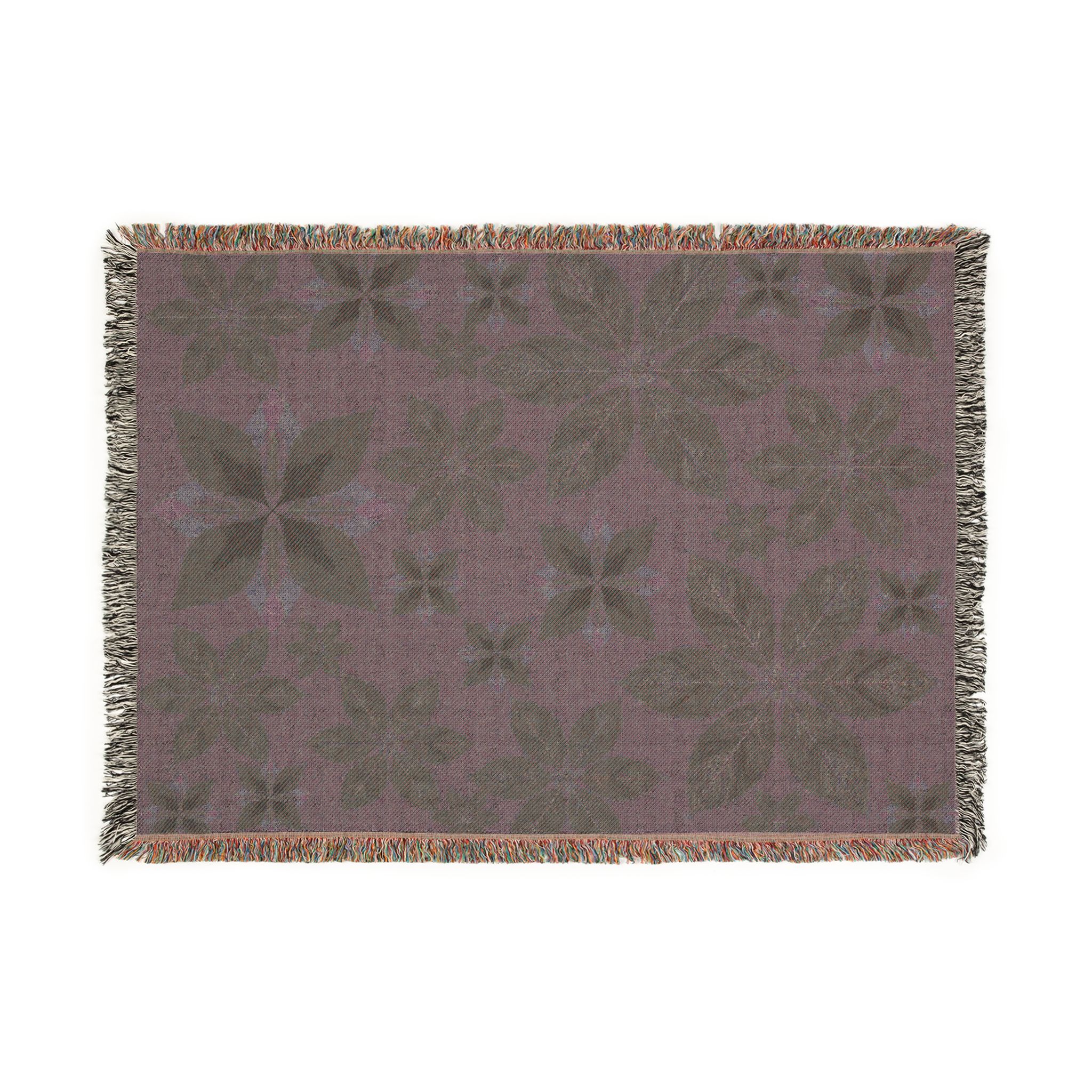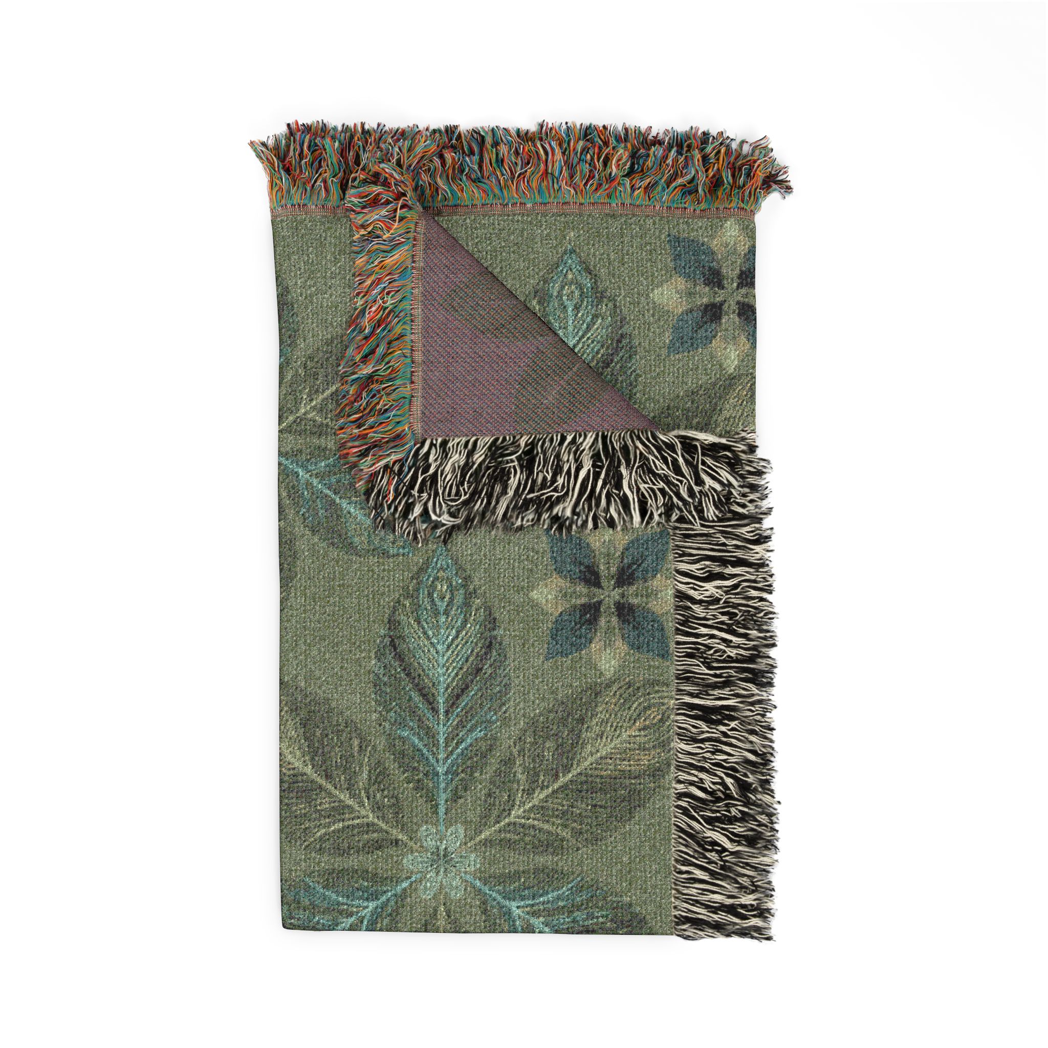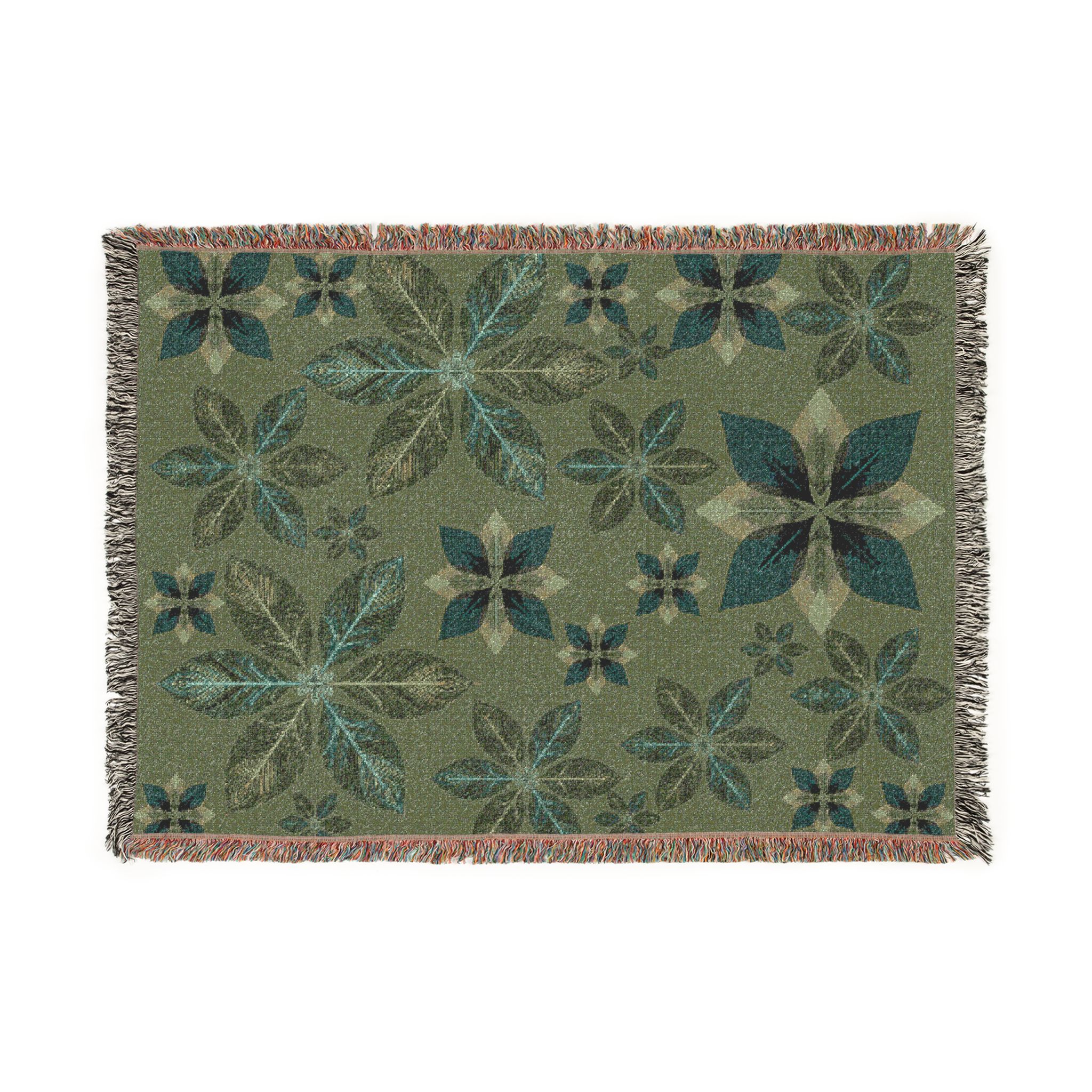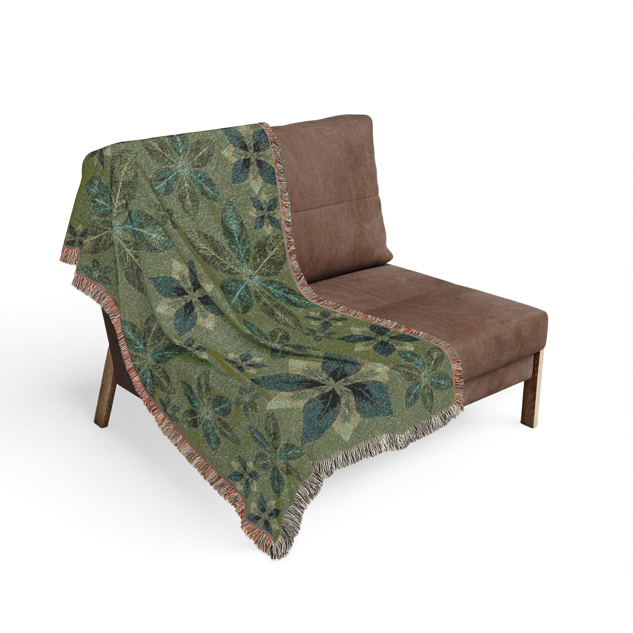 Floral Woven Blanket — Green Leaf Pattern Decorative Throw for Living Room & Patio
