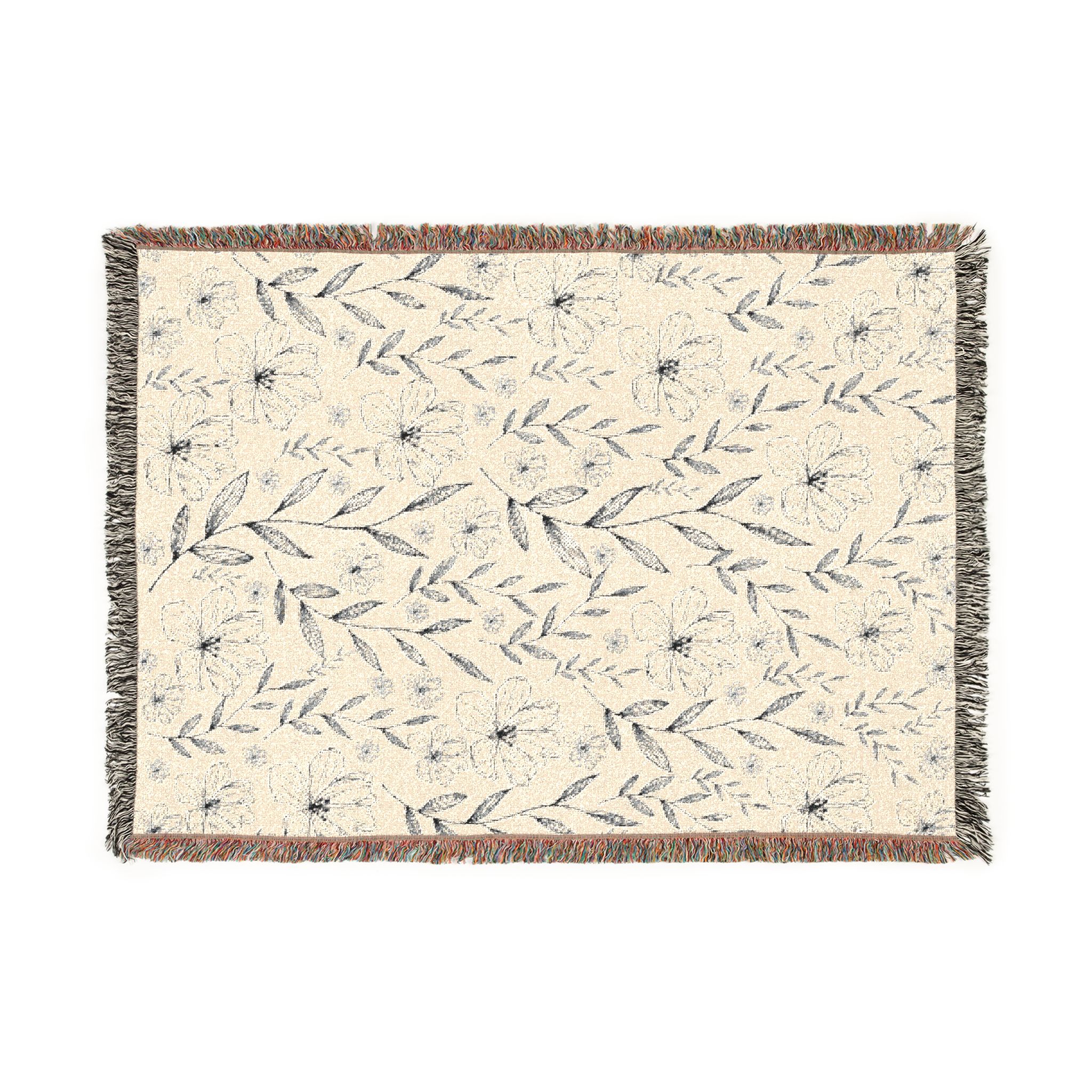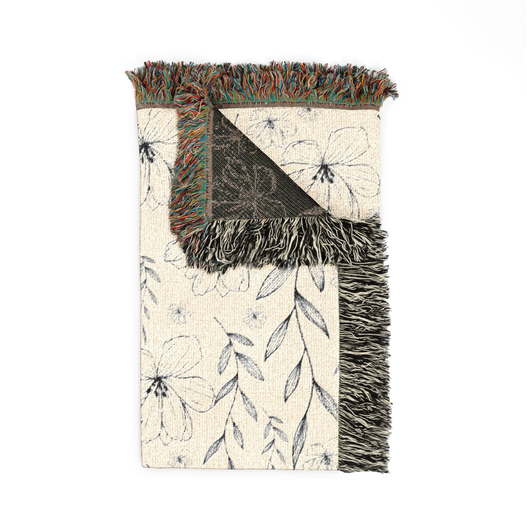 A handwoven cotton blanket that brings quiet, lived-in comfort to your everyday spaces. The woven floral motif reads like an heirloom textile—softly detailed on a warm neutral ground with subtle color variations in the threads. Colorful fringed edges add a touch of craft and personality, while the dense cotton weave gives the throw a comforting weight without feeling stiff. Choose the Artwork variant to keep bold, distinct shapes crisp, or the Photo variant when your design needs gentle gradation and photographic detail. Three sizes fit a cozy lap, a loveseat, or the foot of a bed. Use it as a layering piece on chilly evenings, a textured backdrop for slow mornings, or a familiar wrap while reading by the window.