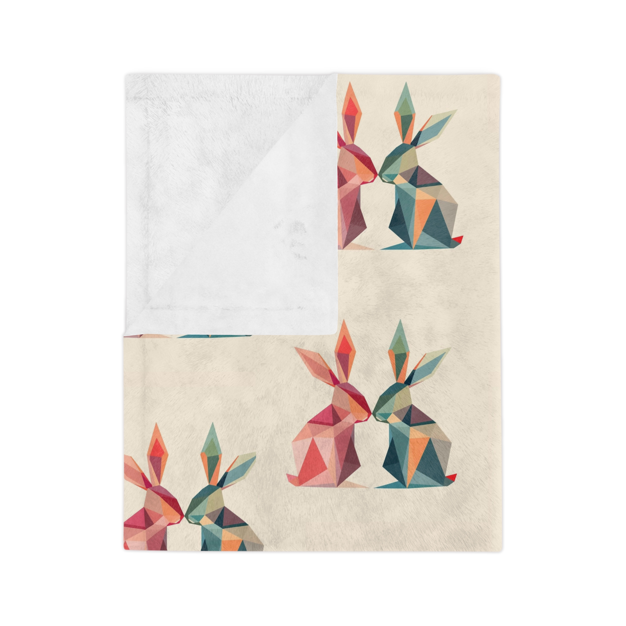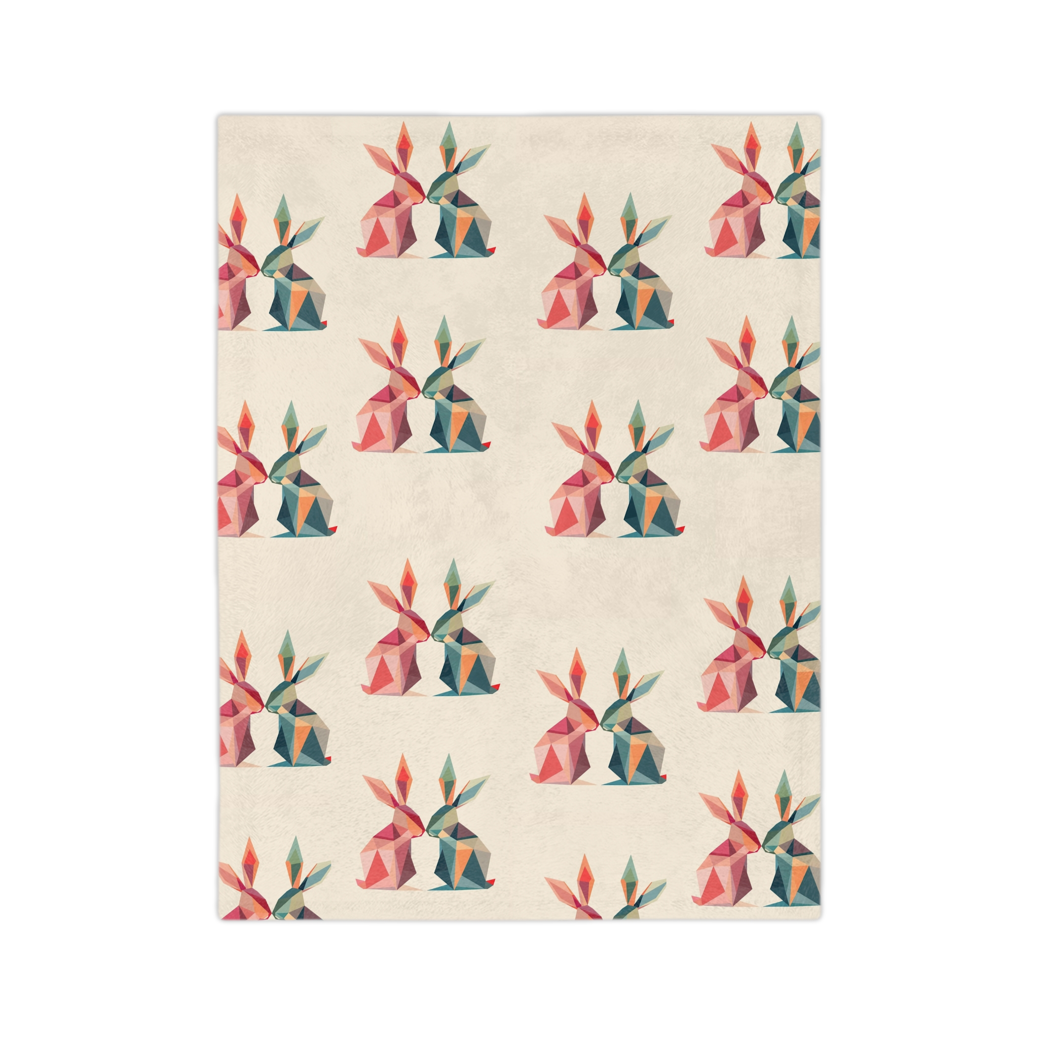 A velvety microfiber blanket that feels like a quiet, warm hug. The soft plush surface invites slow evenings on the couch, sketching sessions at the kitchen table, or curling up with a book by a dim lamp. The repeated low-poly rabbit motif—muted corals, teals, and sandy neutrals—gives the blanket a modern, handmade vibe that blends with cozy, eclectic interiors. Lightweight yet insulating, it drapes easily over shoulders or across a sofa, keeping you warm without weighing you down. Hemmed edges and vivid one-sided printing keep the design crisp wash after wash, while three size options let you choose a throw for solo lounging or a larger layer for shared movie nights.